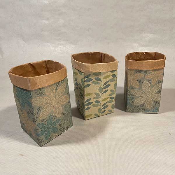 Fertig gestaltete Pocketbags mit dem Motiv „Floral“