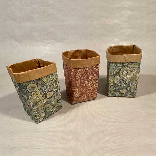 Fertig gestaltete Pocketbags mit dem Motiv „Paisley“