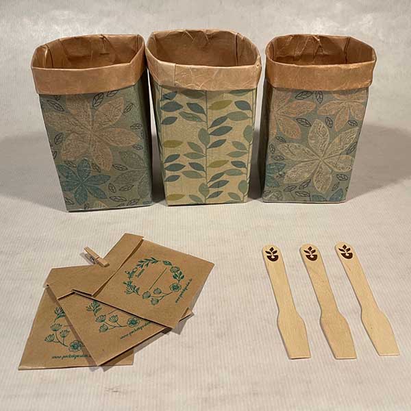 In der Box findest Du drei fertig gestaltete Getränkekartons sowie ein Samenset und Quelltabletten für die Anzucht: